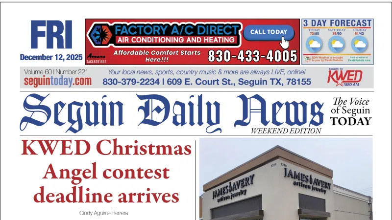 (Seguin) -- Time is running out for families hoping to receive a little extra help this holiday season. Today at 5 p.m. is the final deadline to enter the annual KWED Christmas Angel contest. Residents are encouraged to submit a letter explaining why their own family-or a Guadalupe County family they know-is deserving ...