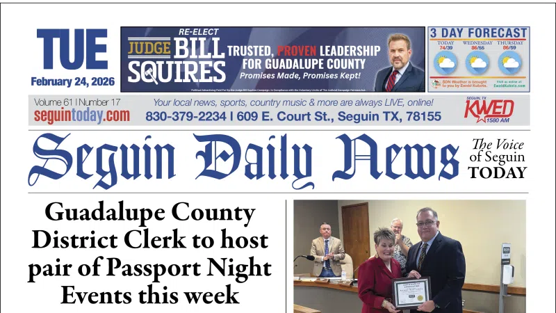 Guadalupe County residents planning for summer travel can now apply for a passport during two upcoming Passport Night events. The public opportunities - one in Seguin and one in Schertz -- are being hosted by the Guadalupe County District Clerk's Office. The events will be held Wednesday, February 25 from 5 to 7 p.m. i...