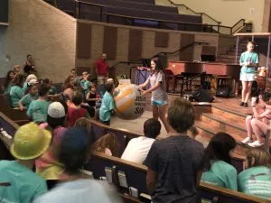 Jesus Wrecks Sin – First Baptist Church on Friday wrapped up its annual Vacation Bible School by raffling off its wrecking ball “beachball” used as part of this year’s construction theme. The message for local children this summer was “Jesus! Our Strong Foundation!” A handful of other VBS opportunities are still available for local families.