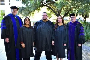 - TLU’s MBA Class of 2023 graduates, pictured with their professors, left to right. are, Fernando Garza, department chair and associate professor of business; Guadalupe Narvaez, Robert Harrison, Igneris Lopez, and Mark Peacock, MBA director and associate professor of business.