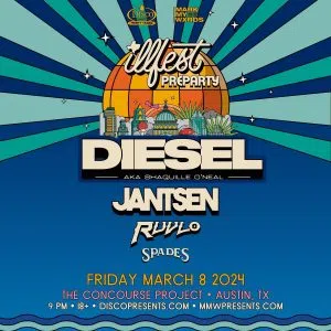 The official ILLfest pre-party events kick off Friday night, with DJ Diesel (Shaquille O’Neal – yes, SHAQ!) appearing with Jantsen at the Concourse Project. Tickets for ILLfest are available at illfest.com, where lineups, merch, and more information are also available.