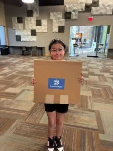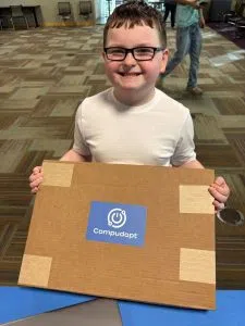 The library, thanks to its partnership with Compudopt, awarded the computers to families via a lottery system.