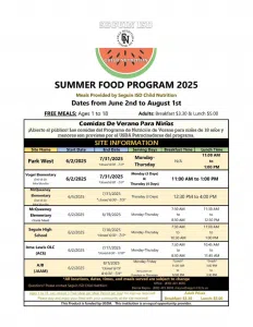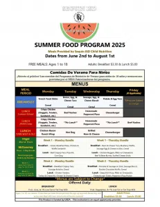 Over the summer, the Seguin ISD will continue to provide free meals for children ages 1 to 18 through its Summer Food Program being hosted across several school and park locations. The breakfast and lunch meals are designed for all families. Families do not have to be in need and no paperwork or sign-ups are required.